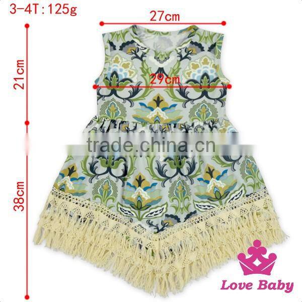 Lovely Summer Children Clothes Cute Cartoon Pattern Tassel Bottom Sleeveless Cotton Baby Girl Dress