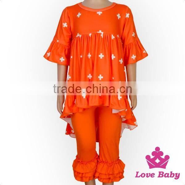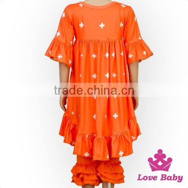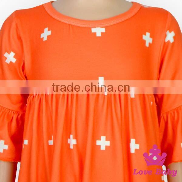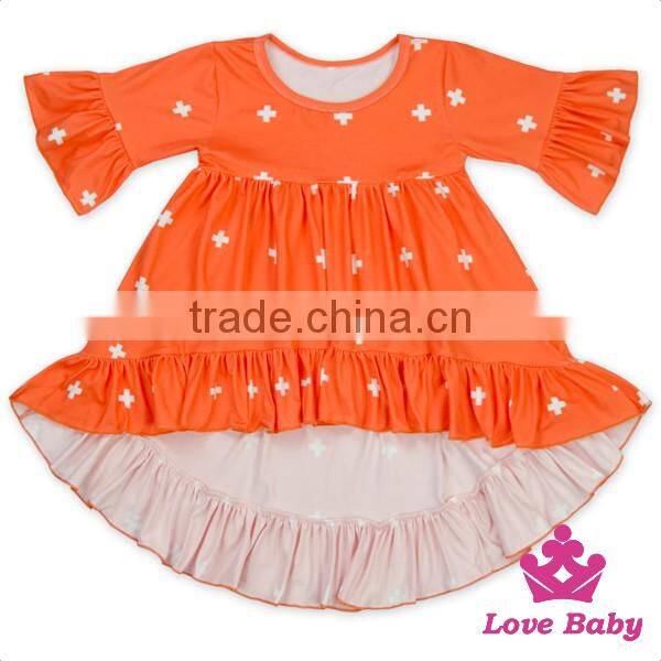 2017 Lastest Design Children Half Sleeve Ruffle Short Front Long Behind Cutting Floral Printed Model Baby Dress