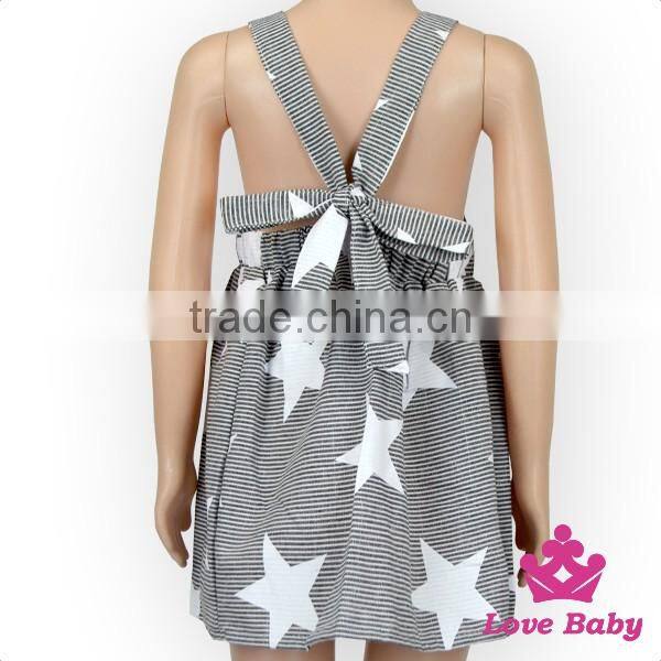 Latest Children Dress Designs Stripe Star Printed Backless Halter Bow Young Girls Wearing Sleeveless Short Skirts