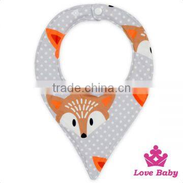 Chinese Handmade Wholesale Soft Fancy Printing Fox Fabric Triangle Feeding Baby Bib In Animal Shape