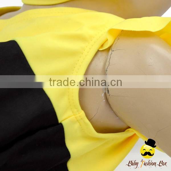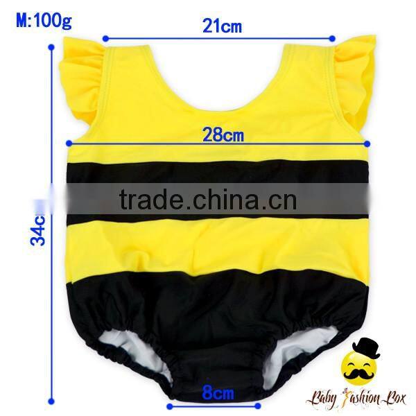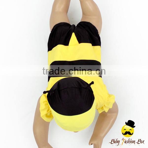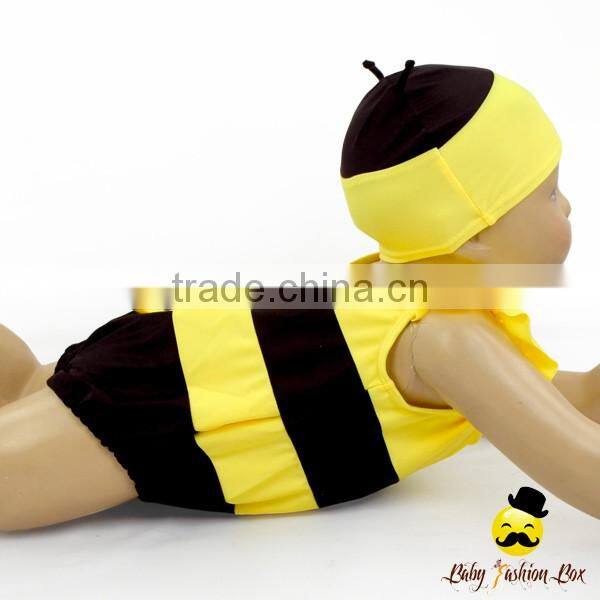 Kids Cute Unisex Remake Props Bee Cosplay Yellow And Black Flutter Sleeve One Piece Beach Clothes With Cap 2pcs Swimwear