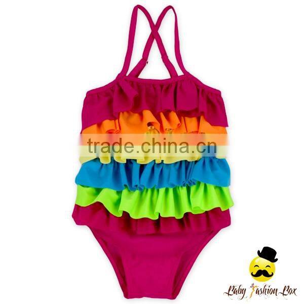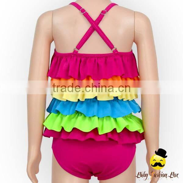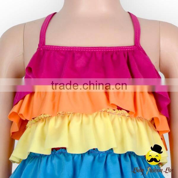 Sweet Children Strap Ruffle Kids Beach Little Girl Modeling Rainbow Swimwear Clothes