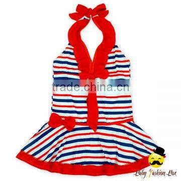 YZA-002 Yihong Cute Stripe Stylish Little Girls Sleeveless Bow Dress Designs Swimsuit Onesie Kids Swimming Wear