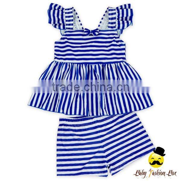 2017New Summer Children Striped Pink Flutter Sleeve Young Girl Separable Dress Top Kids Beach Clothes Swimwear