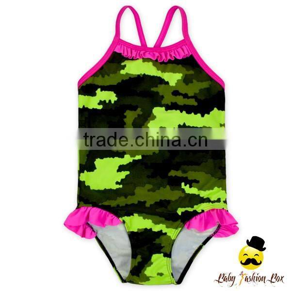 Kiddy Summer Stringy Selvedge Camouflage Pattern Printed Strap Baby Girl One Piece Swimwear Beachwear