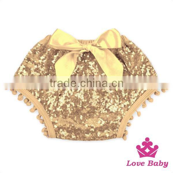 Charming Champine Sequins Baby Bloomers With Bows 0-2 Years Old Girls Cotton Bloomers Soft Touch Diaper Cover