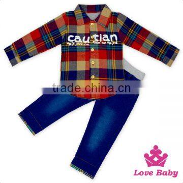 New Arrive Boys&Girls Clothes Set Long Sleeve Lattice Shirt With Long Jeans Fanshion Baby Clothing Outfits