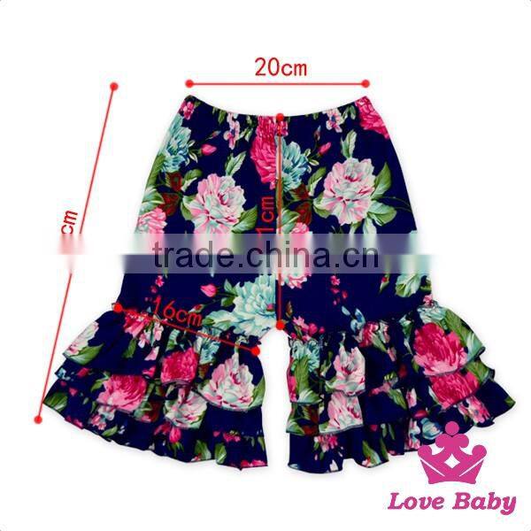Hot Sale Child Summer Clothes Clover Printed Cotton Ruffle Stringy Selvedge Baby Girl Shorts