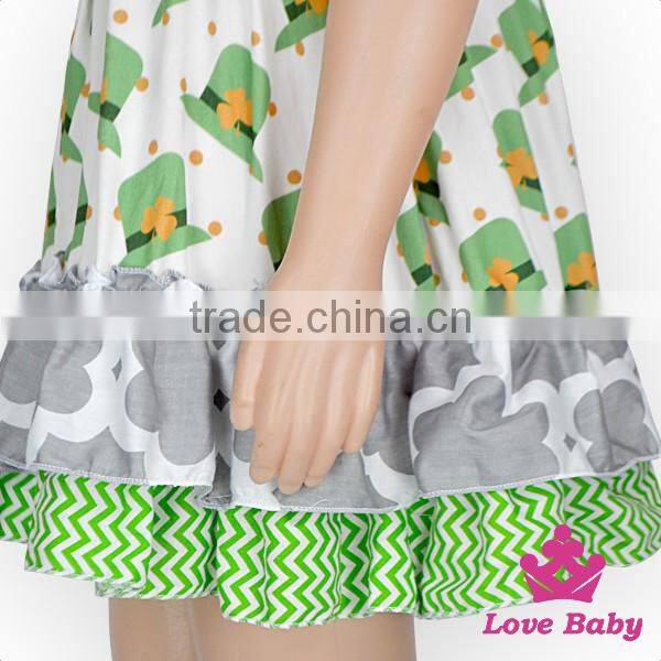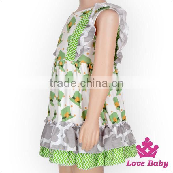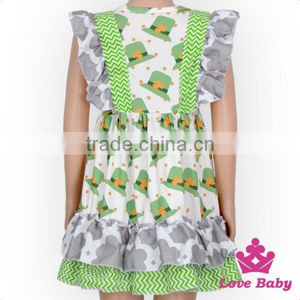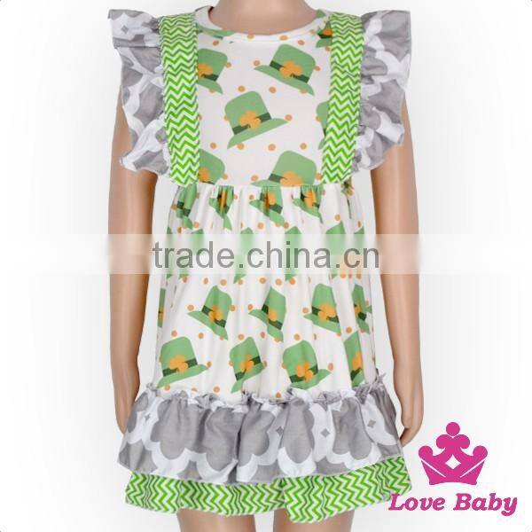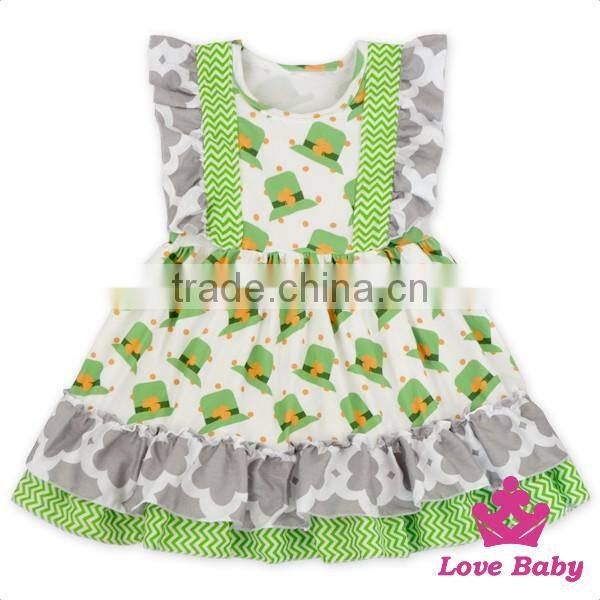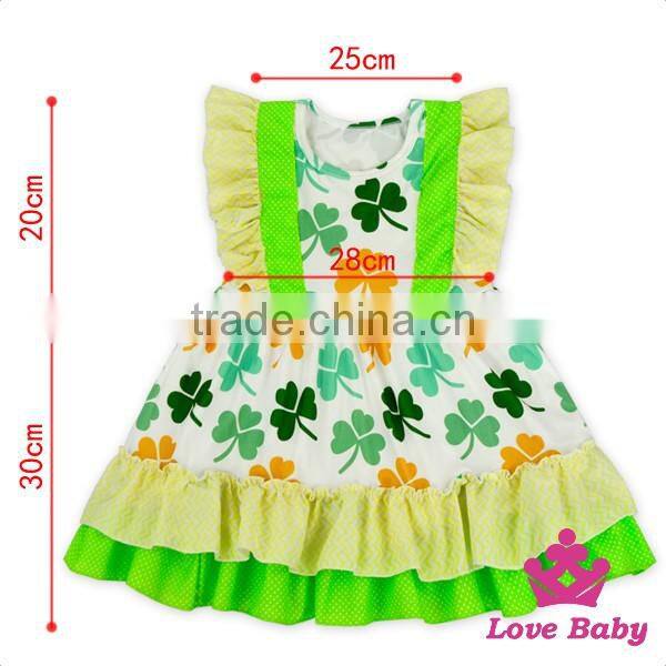 Spring St.Patricks Day Clothes Green Color Flutter Sleeve Ruffle Design Baby Girl Short Puffy Dress