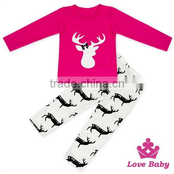 2017 Spring Western Baby Girls Boutique Clothing Hot Pink Cotton Long Sleeve Deer Pattern Printed Children Christmas T Shirt