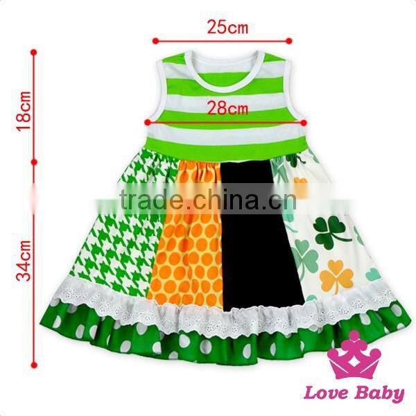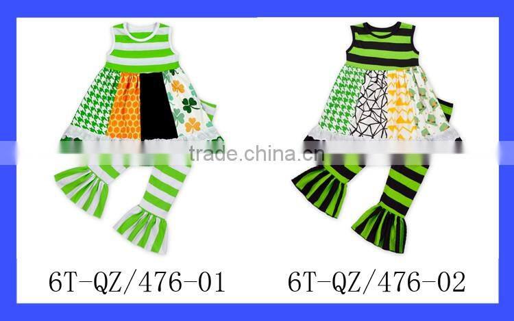 2017 Spring Western Boutique Clothing Ruffle Sleeveless Green Lucky Clover Pattern Printed St. Patricks Day Children Outfits