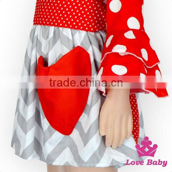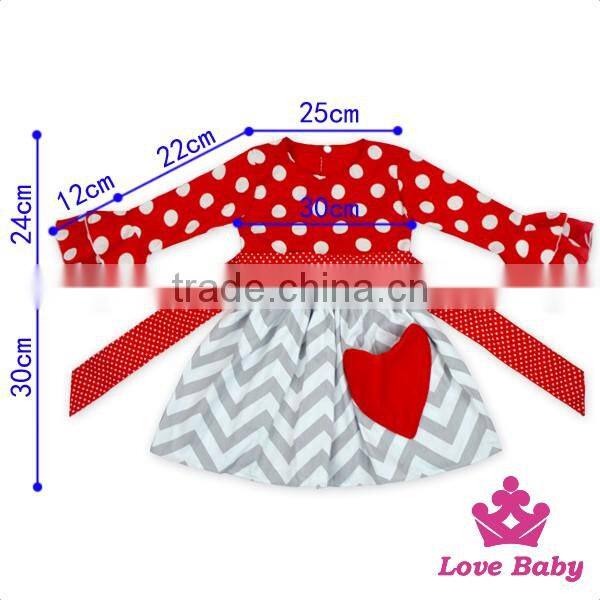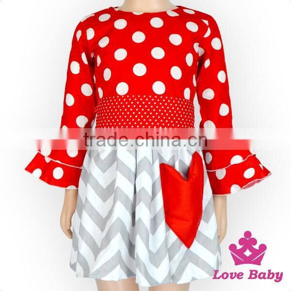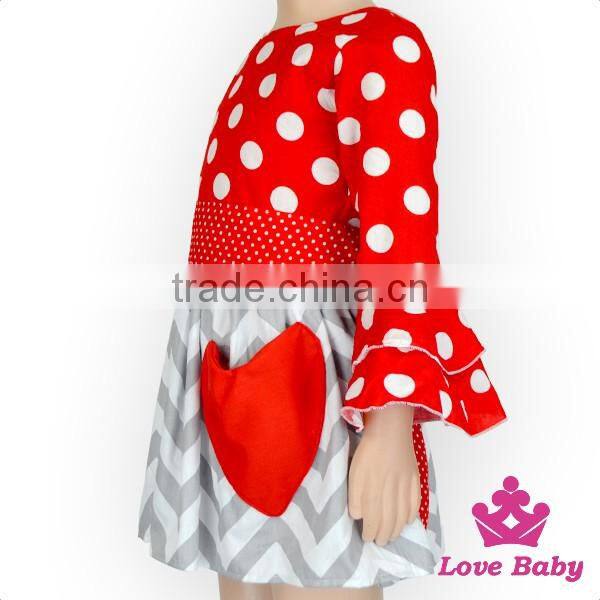 48BQA145Yiwu Lovebaby Red Dot Long Sleeve Top Ruffle Valentine's Day Heart Print Dresses for Girls of 10 Years Old