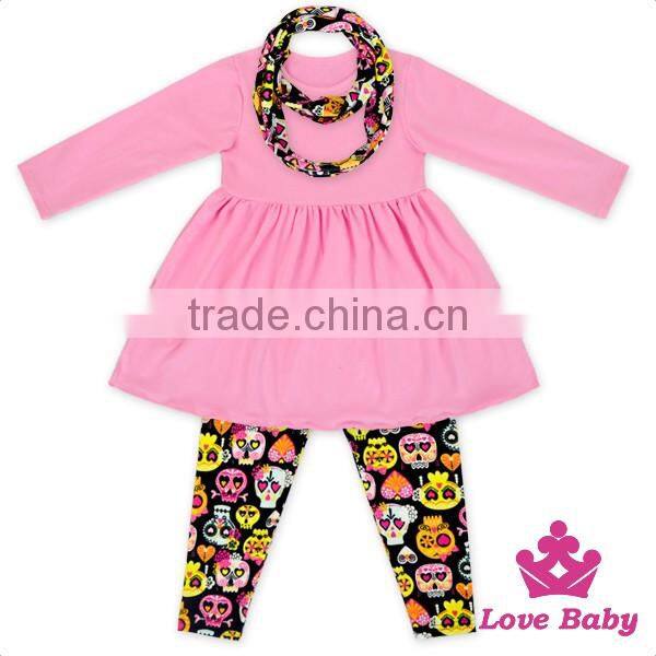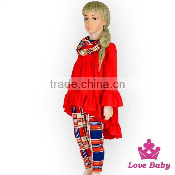 Long Sleeve Ruffle Clothing Set Cotton & Polyester Girls Winter Outfit With Neckerchief Newborn Baby Clothing Wholesale