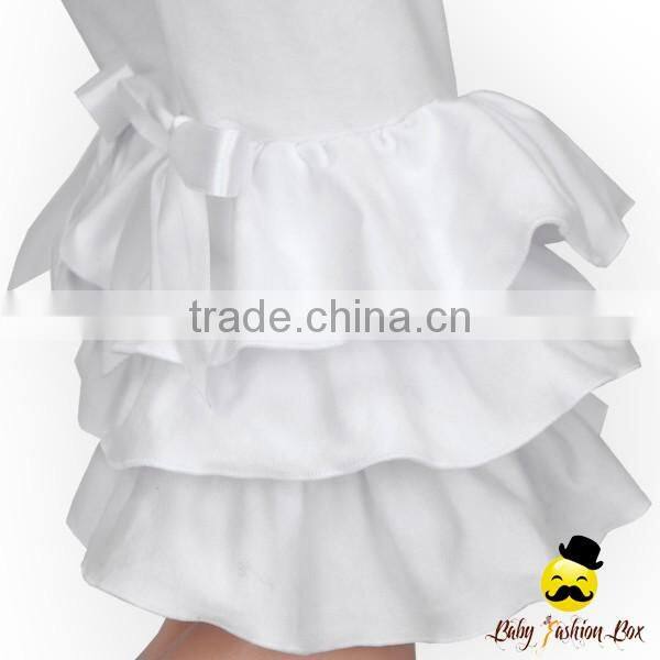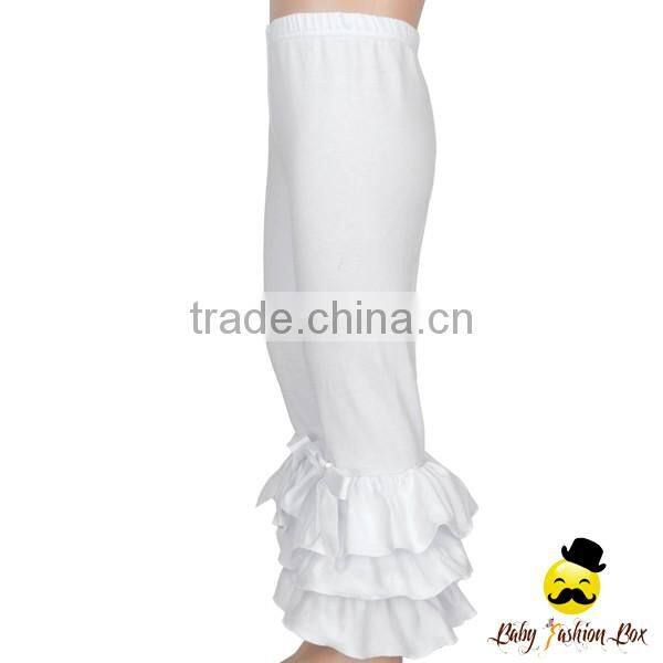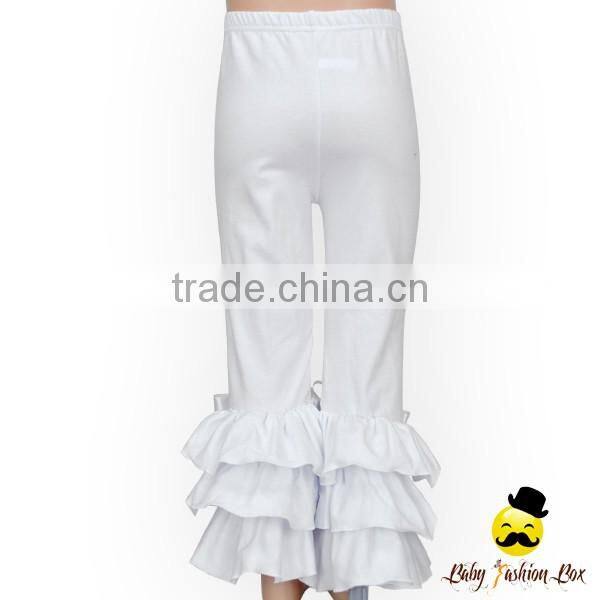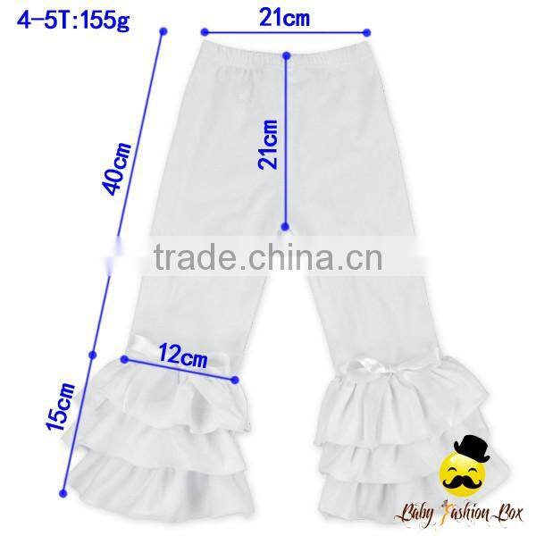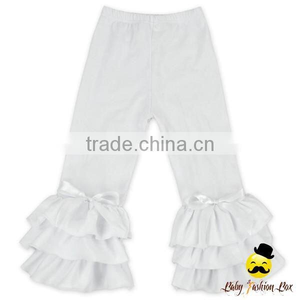 Newest Design Spring Kids Plain White Ruffle Stringy Selvedge Long Baby Girl Trousers Icing Pants With Bow