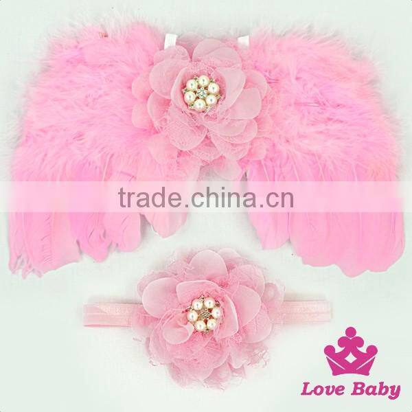Wholesale Lovely 2pcs Newborn Baby Gift Sets Pink Flower Wings and Headband Kids Hair Birthday Accessory