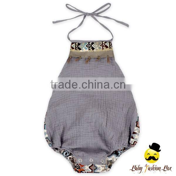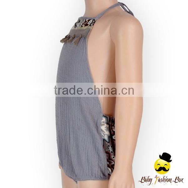 Harem Style Gray Color Halter Fringe Infant Newborn Baby Boy Vintage Romper Grows Clothes