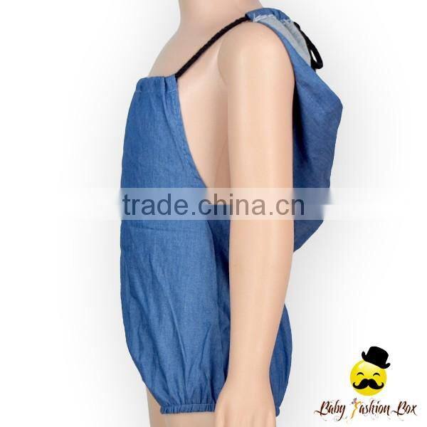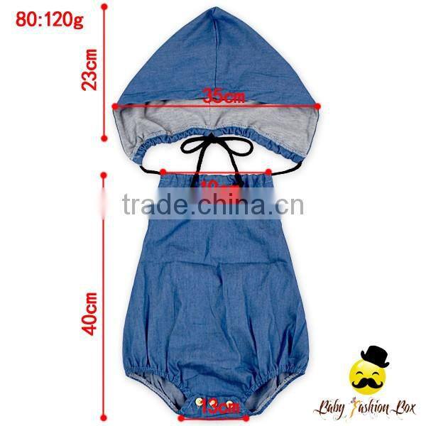 Summer New Design Unisex Jeans Plain Halter Blank Bodysuit Soft Jumpsuit Baby Infant Magic Toddler Bulk Hood Romper