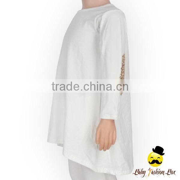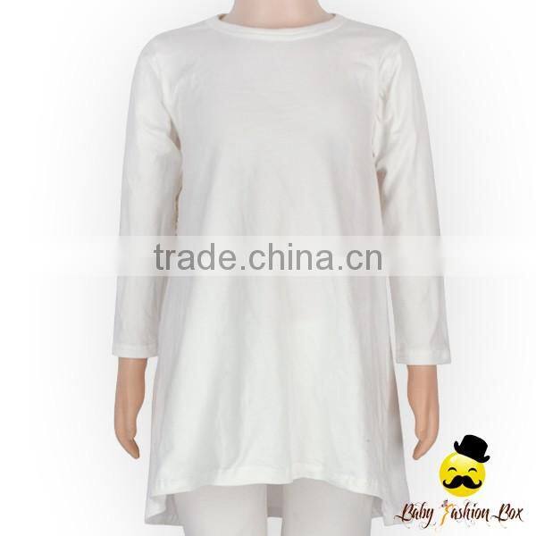 Autume And Winter Kids Blouses Breathable 100% Cotton Plain White Long Sleeve Baby Gir Dress Blank Top Shirt
