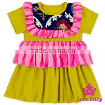 Solid Color Soft Cotton Baby Girls Boutique Outfits Ruffle Short Sleeve Kids Shirts Designs