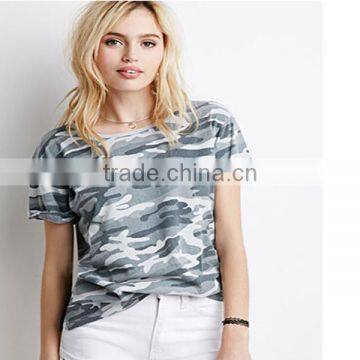 2015 Hot Sale Ladies Wear Short Sleeves Camo T-Shirt Round Neck Tee