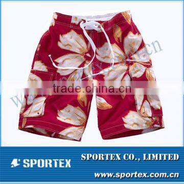 -Fabric: 100% polyester -Lining: none or can put mesh lining -Fecture: anti-bacterial, breathable, quickdry -Anatomic cut and comfortable feel -Elastic waist with draw cords -Side pockets or back pockets -Stylish design suitable for European and American market -Men's and ladies' styles with fashionable design are available -Function: beachwear/swimwear |