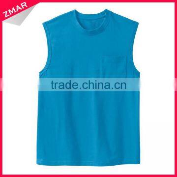 Latest Design Man Sleeveless Custom Fashion Bulk Blank Collar Pocket Men T-shirt