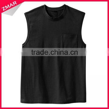 180gsm 100 Cotton Plus Size Wholesale Men's Blank Pocket Sleeveless T Shirt