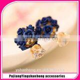 2016 New Arrived Crystal Rose Flowers Stud Earring Colors Wholesale Double Side Flower Design Stud
