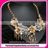 2016 Hot Sales Bulk Flower Resin Crystal Material Gold Chain Flower Pendant Shourouk Statement Necklace Semi Precious Jewellery