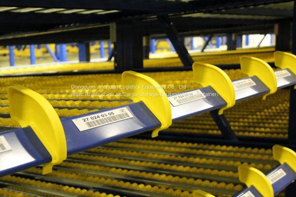 The rack is dynamic storage providing double functions of storage and conveyor. The goods is transferred from the entrance to the exit of the rack through the gradient fluent strip, achieving the first in and first out sequence. The system is suitable for the occasion of the arket distribution center, production assembly line, small goods transferring and sorting operation etc.