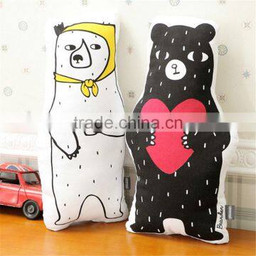 S64856A Stuffed Plush Toys Cotton 3D White And Black Bear Animals Decorative Cushion