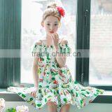 S17617A European Floral Printed Kid's Dress Girl Party Wear Summer Dress