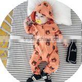 S17711A Baby Autumn Cartoon Bear Pattern Hooded Cotton Romper