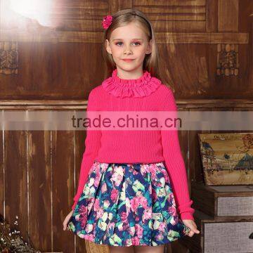 S32502W New Fashion Design Baby Clothing Girl Sweater Cotton Knitted With Floral Sweaters