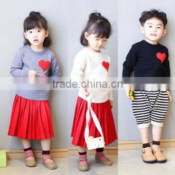 S65648A Love Heart Pattern Tops Kids Long Sleeve Knitted Sweaters