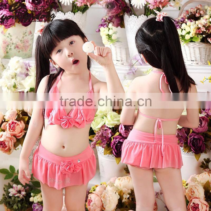 S13737A 2016 Wholesale Kids Swimwear Solid Color Children Beachwear Girls Swimwear