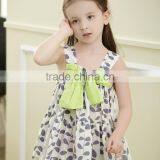 New Product 2016 Wholesale Children's Boutique Girls Dress Leaf Printed With Big Green Bow Clothing