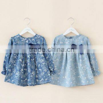 2016 New Style long sleeves Kids Clothes Dresses For Kids Fancy Designs Baby Girls Casual Printed Dress with bowknot