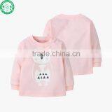 Puff Printing Cute Pink Crew Neck Baby Girls Long Sleeves T-shirt