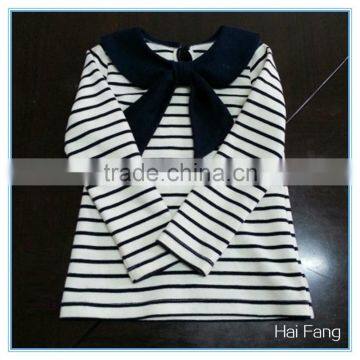 OEM Custom Children Girls Long Sleeve T Shirt, Cotton Bowknot Round Collar T Shirt, Stripe T Shirt