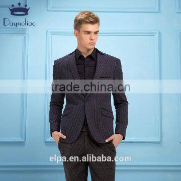Men Blazer 2016 New Arrival One Button Blazer Men Casual Slim Fit Knitted Jacket Men Black Elbow Patches Suits Blazer