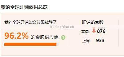 Our reply rate is 86.4%,above the average- 70%. Our home was visted 96.2% higher than golden supplier.