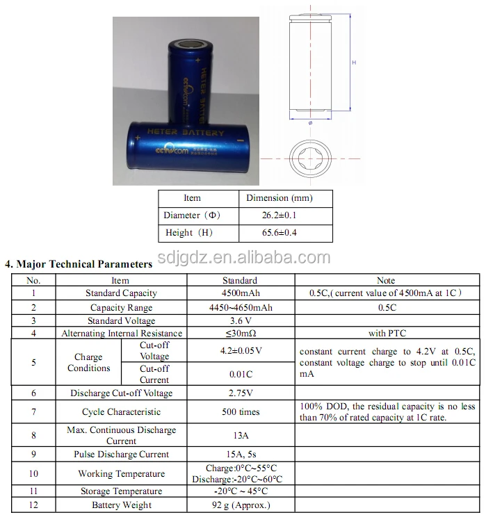 26650 Battery Cells 3.7V 4500mAh Heter BatteryUS$ 3.15 - 3.25MOQ: 10 Pieces