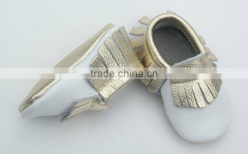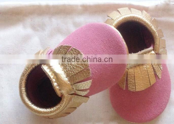 Pink and Gold Moccasin Baby Shoes Genuine Leather Soft Sole for Boy and Girl