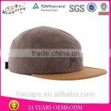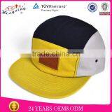 Yellow Black White Leather Patch Fashion Custom 5-panel Wool Cap