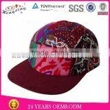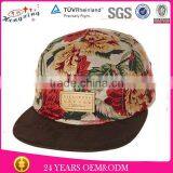 Custom Leather Patch Printed Flat Brim Floral 5 Panel Snap Back Hats