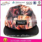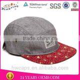 Different Panel Printied 5 Panel Camp Caps/Wholesale Leather Patch 5 Panel Camp Caps