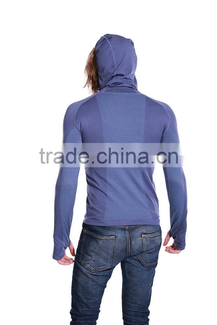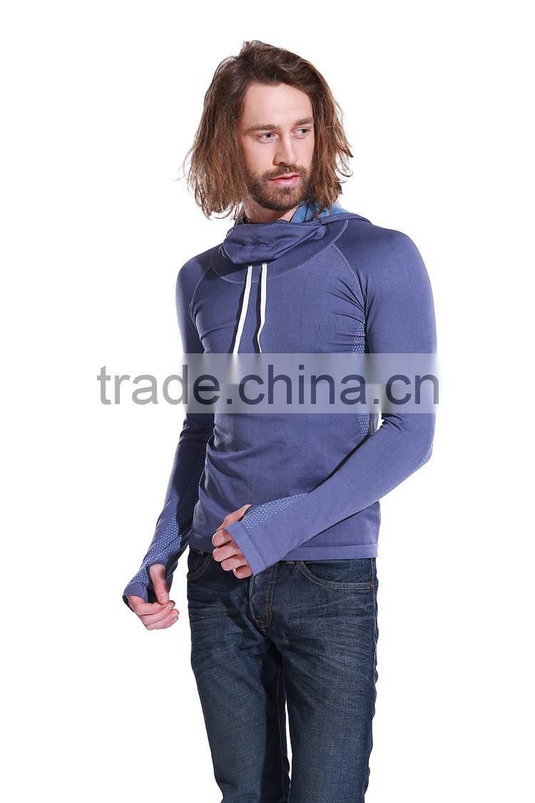 Seamless Long Sleeve Hoodie Shirt Sportswear for Men With Thumbholes
