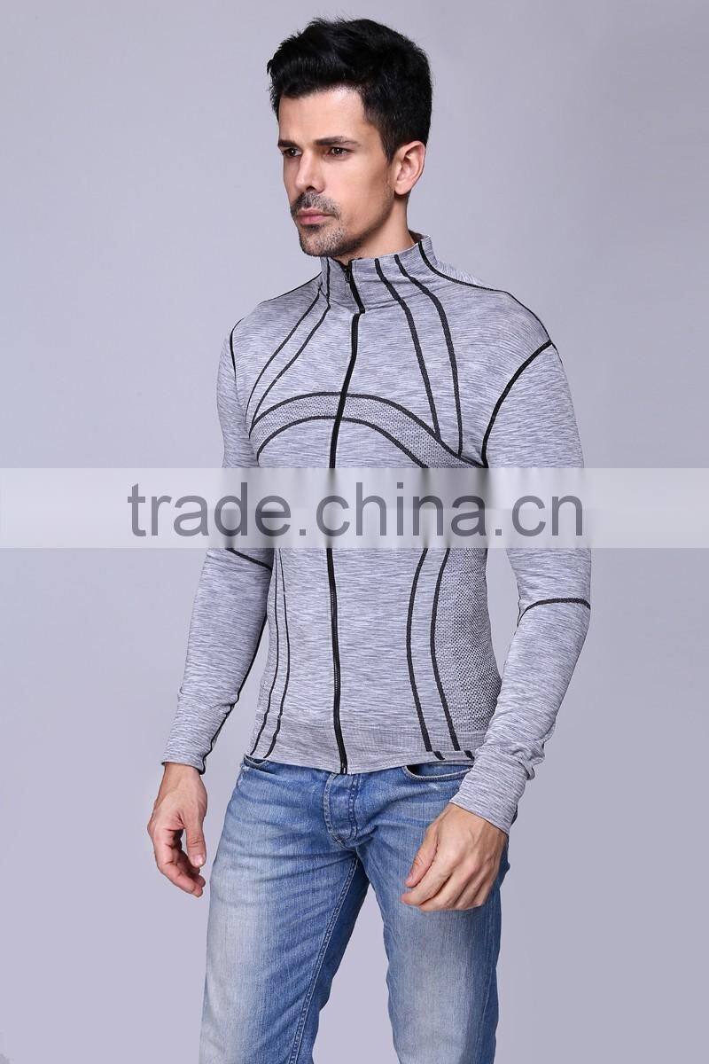Custom Compression t Shirt Sports Mens Seamless Gym Zipper Jacket