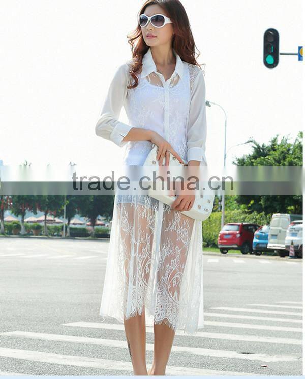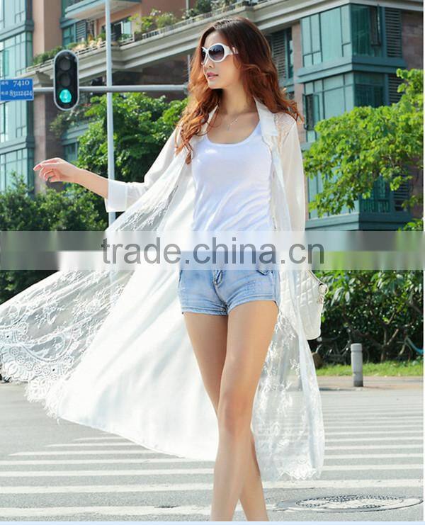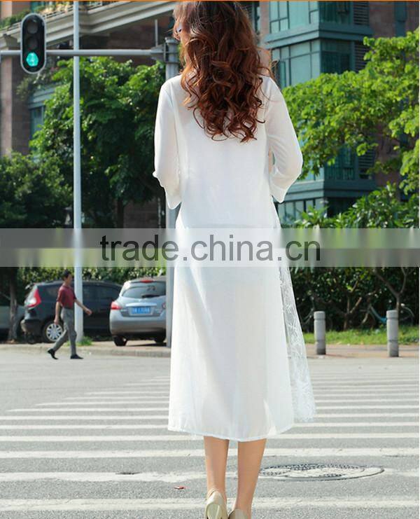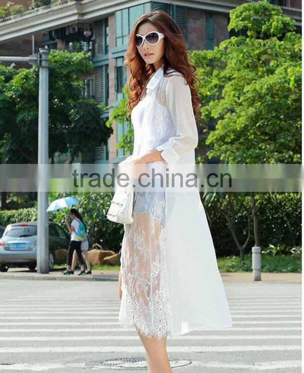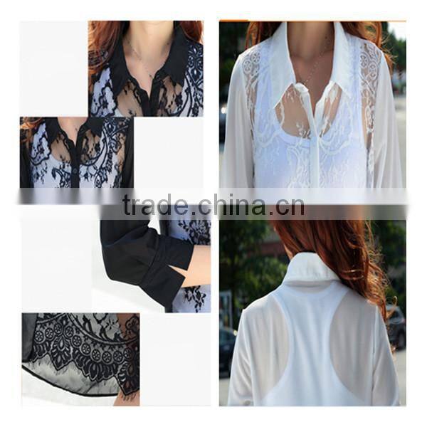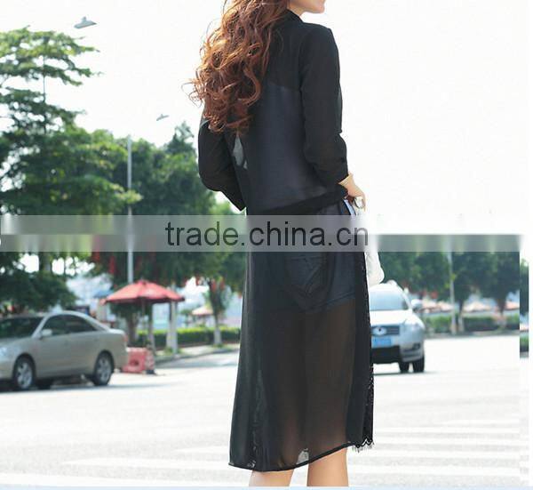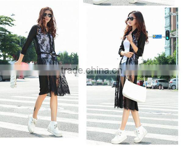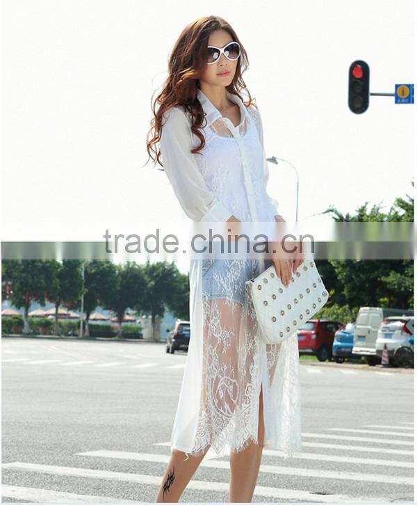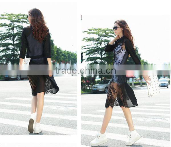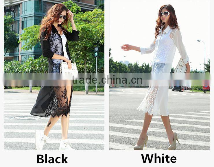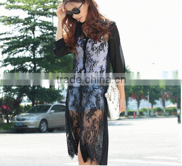 MOQ 1pc hot sale with good quality chiffon and lace patchwork cardigan long lace t shirt,t shirt women